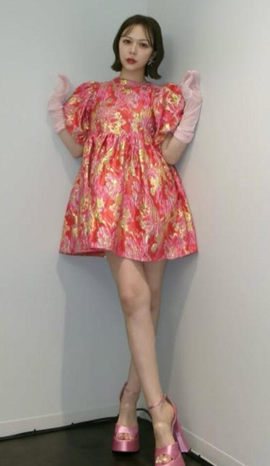 オレンジのパンプスが映える大人っぽいコーデを披露し、従来のギャル系ファッションから大きく路線変更していることが確認できます。