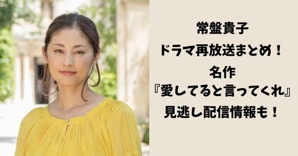 常盤貴子ドラマ再放送まとめ!名作『愛してると言ってくれ』ほか見逃し配信情報も!