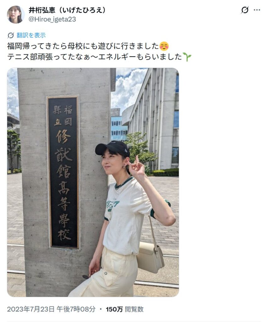 ※出典:井桁弘恵 公式X(@Hiroe_igeta23)2023年7月投稿